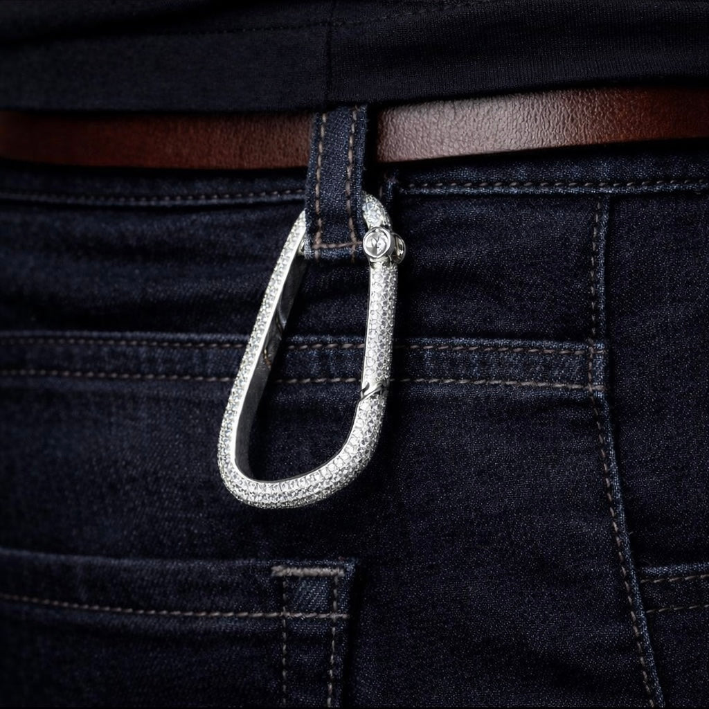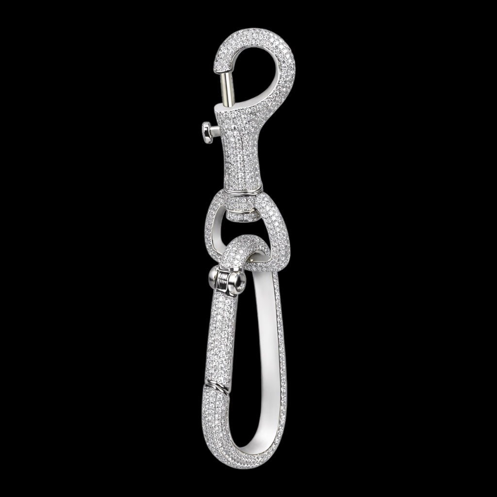 Gemaakt van massief messing en afgewerkt met een gepolijste witgoud vergulde afwerking, is de Premium Iced Karabijn bezet met handgezette micro pavé gesimuleerde diamanten voor een strakke, hoogglans uitstraling.