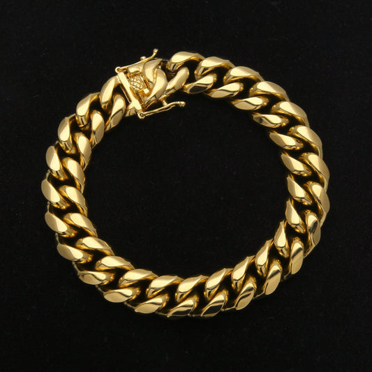 12mm Gold Plated Iced Out Miami Cuban Bracelet