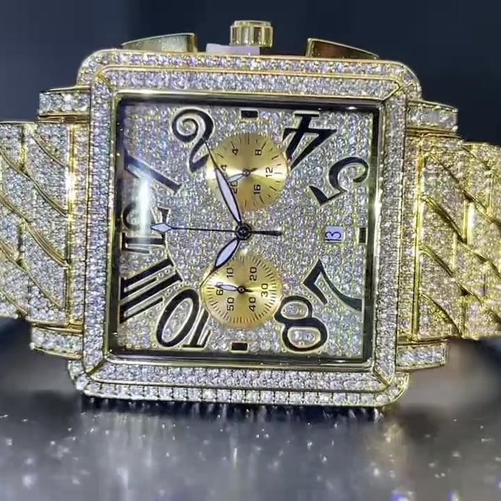 Royal Frost 45mm – Fully Iced Gold-Plated Square Watch