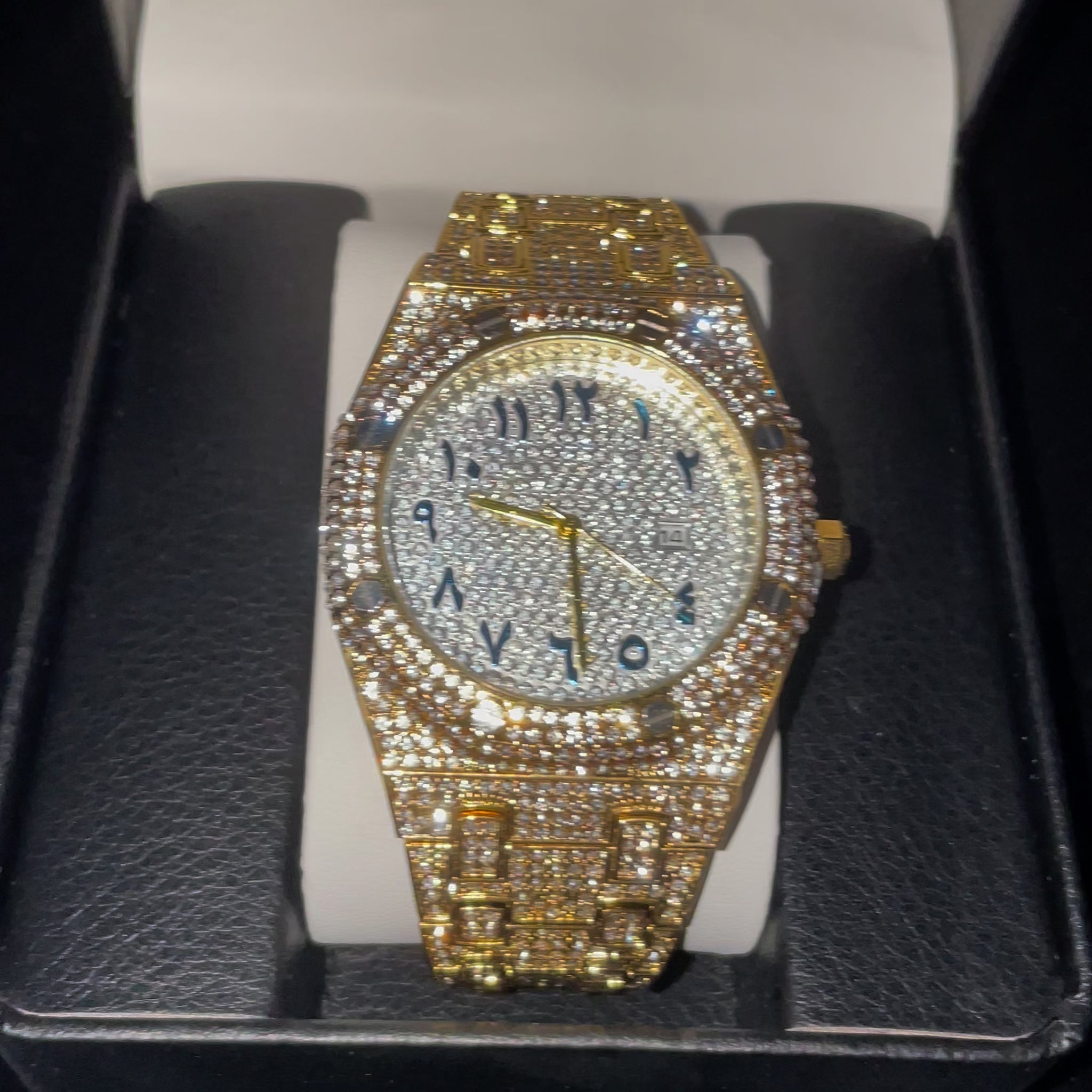 Royal Majestic 42mm Arabic – Fully Iced Gold-Plated Watch