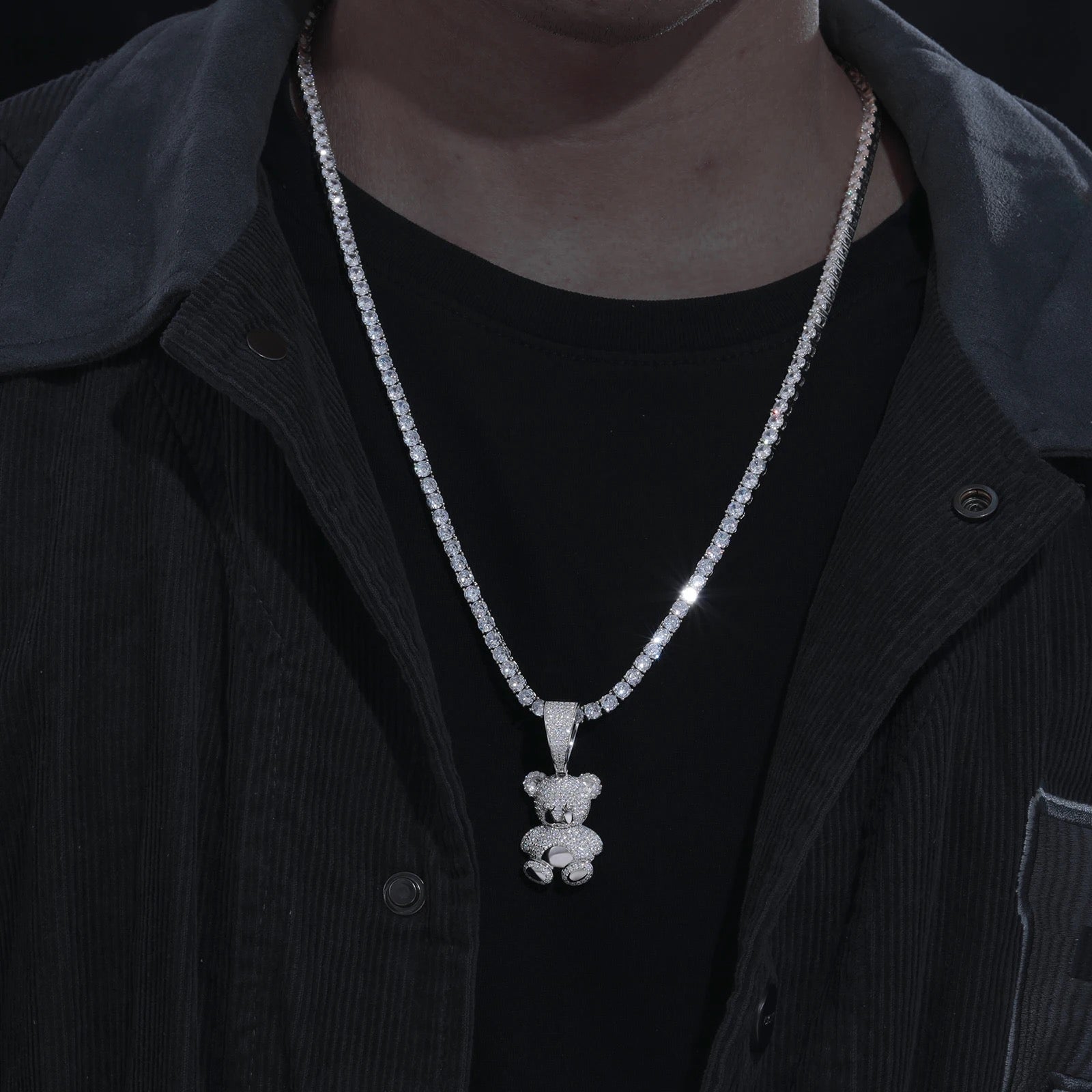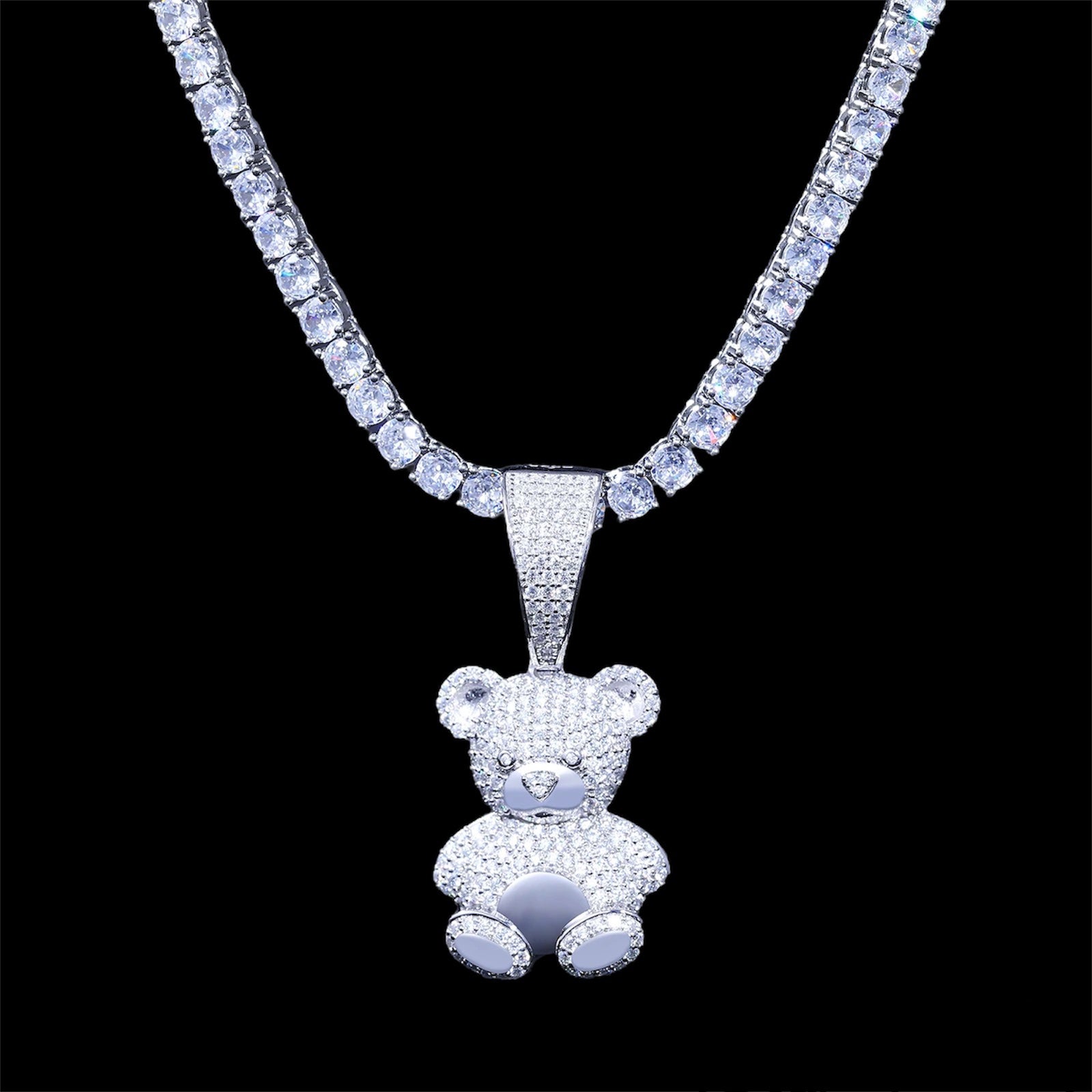 The pendant is made of silver and hand set with genuine VVS quality Moissanite diamonds. Our moissanite diamonds have a D color ( exceptional white) and that is the highest color grade.