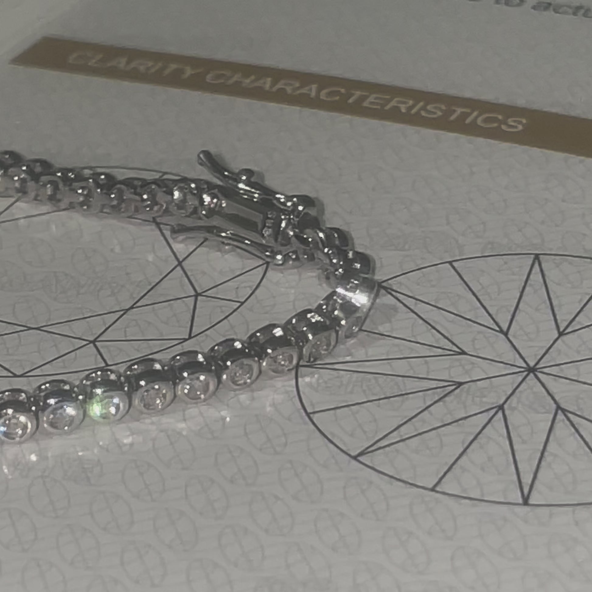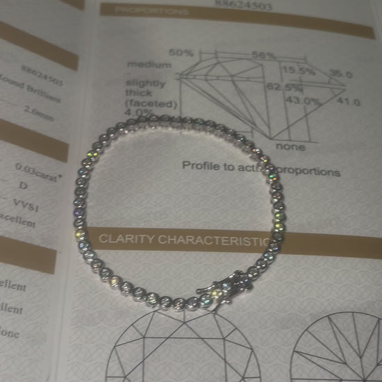 Le bracelet est en argent et serti à la main de véritables diamants Moissanite de qualité VVS d'un diamètre de 2 mm. Nos diamants moissanite ont une couleur D ( blanc exceptionnel) et c'est le grade de couleur le plus élevé.