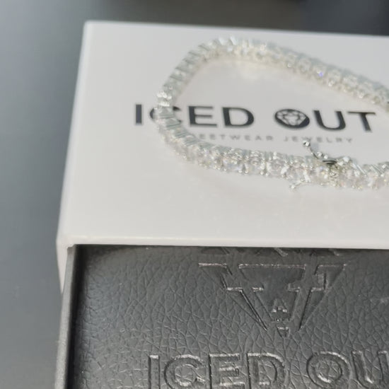 BRACELET TENNIS PLAQUE OR BLANC 4MM