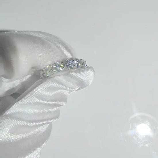 La bague est en argent et sertie à la main de véritables diamants Moissanite de qualité VVS. Nos diamants moissanite ont une couleur D ( blanc exceptionnel) et c'est le grade de couleur le plus élevé.