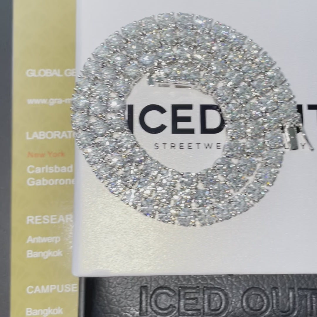Le collier est en argent et serti à la main de véritables diamants Moissanite de qualité VVS d'un diamètre de 5 mm. Nos diamants moissanite ont une couleur D ( blanc exceptionnel) et c'est le grade de couleur le plus élevé.