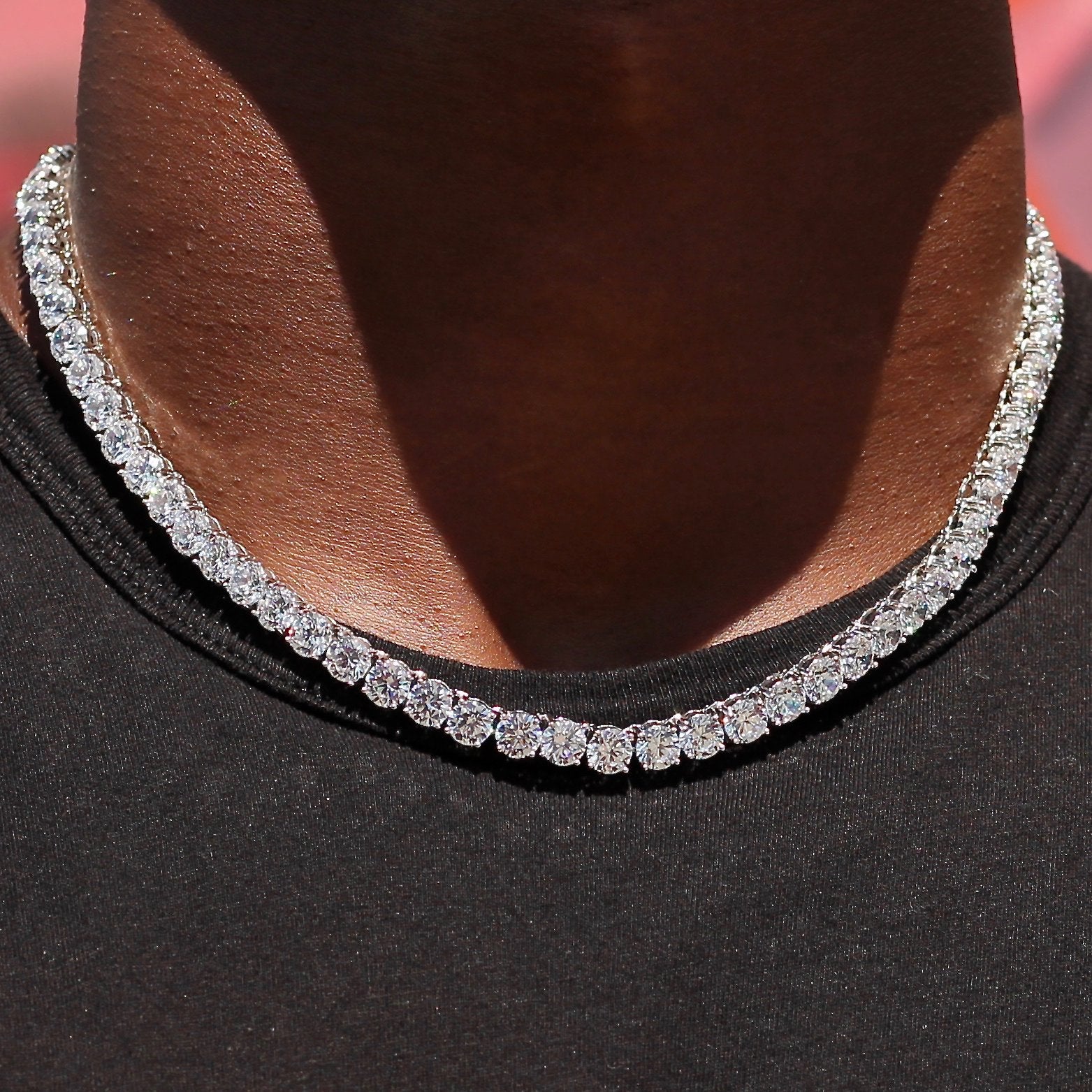 CHAINE DE TENNIS PLAQUE OR BLANC 6MM