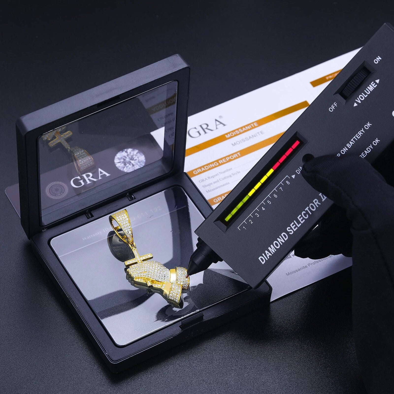 Le pendentif est en argent et serti à la main de diamants Moissanite de qualité VVS d'un diamètre de 1,2 mm. Nos diamants moissanite ont une couleur D ( blanc exceptionnel) et c'est le grade de couleur le plus élevé.