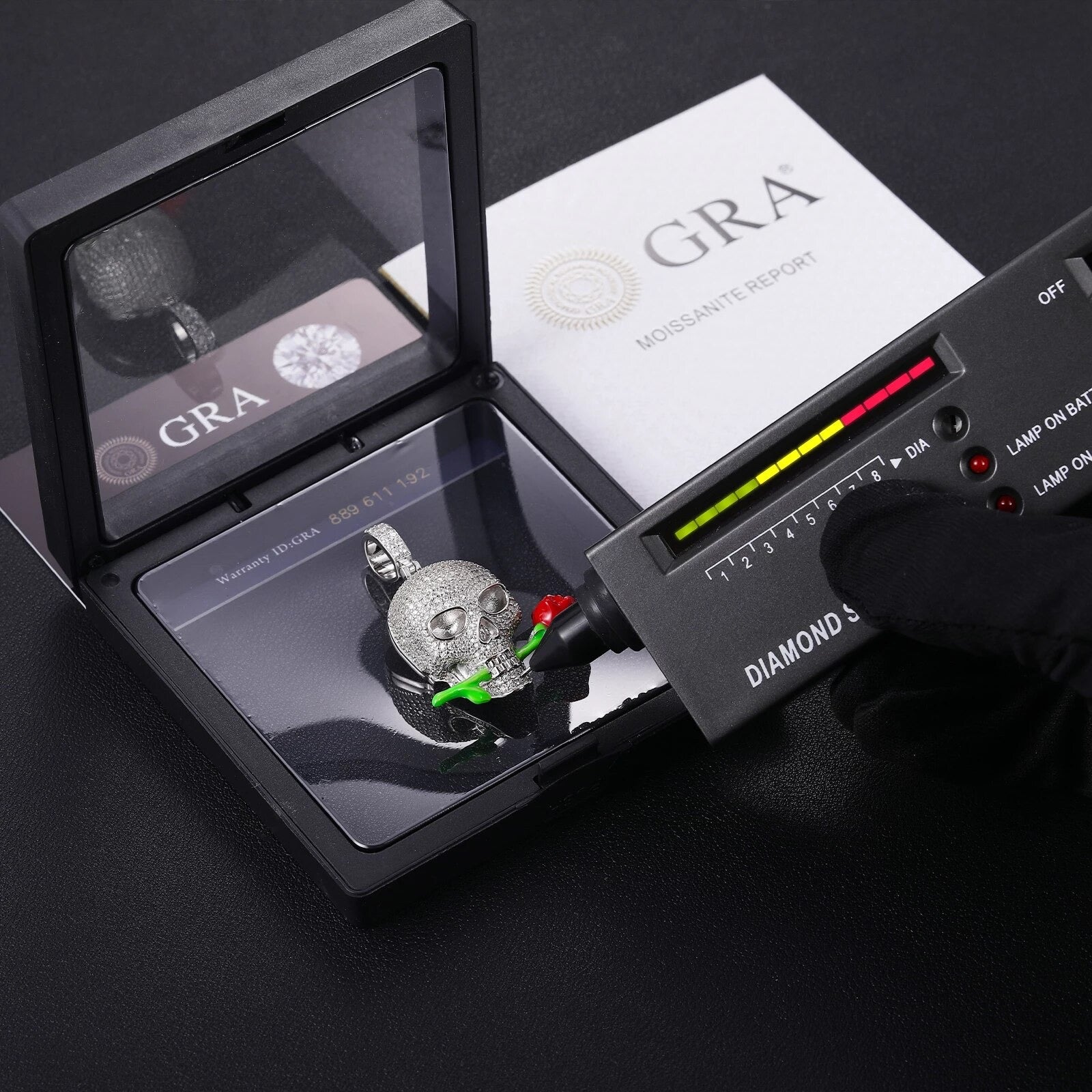 Le pendentif est en argent et serti à la main de véritables diamants Moissanite de qualité VVS. Nos diamants moissanite ont une couleur D ( blanc exceptionnel) et c'est le grade de couleur le plus élevé.