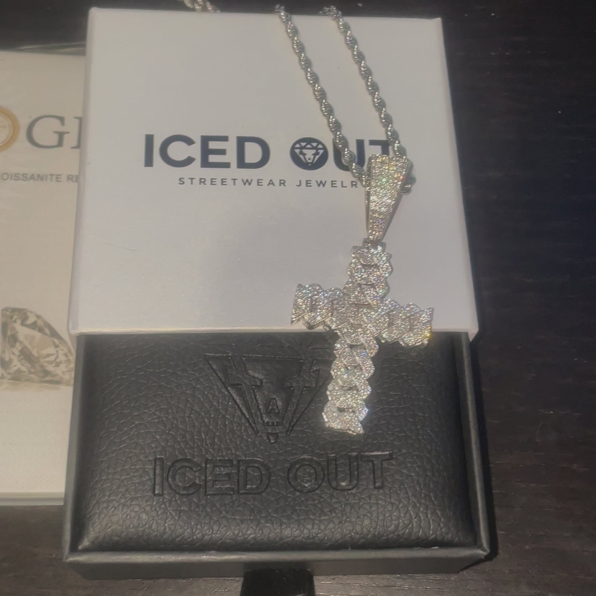 De kruis hanger is vervaardigd in zilver en hand gezet met VVS kwaliteit Moissanite diamanten. Onze moissanite diamanten hebben een D kleur (exceptional white) en dat is de hoogste kleurengraad.
