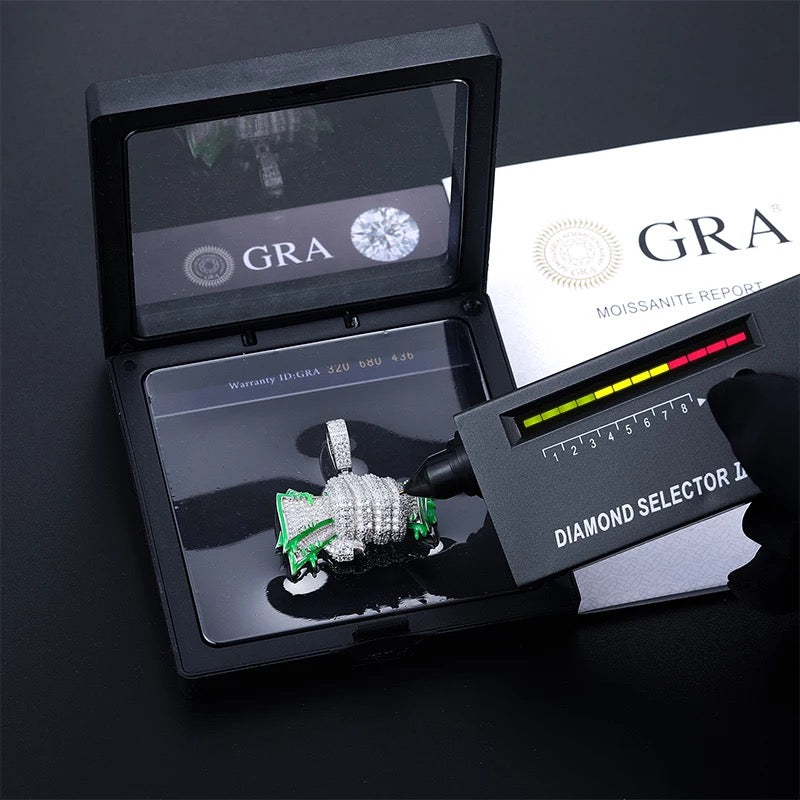 De hanger is vervaardigd in zilver en is hand gezet met VVS kwaliteit moissanite diamanten. Onze moissanite diamanten hebben een D kleur (exceptional white) en dat is de hoogste kleurengraad.