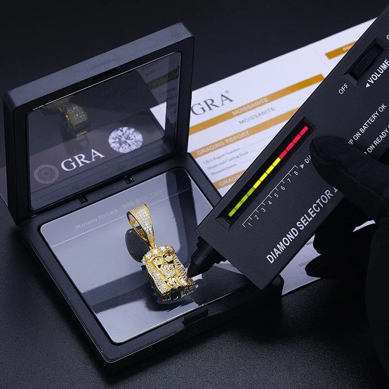 De jezus hanger is vervaardigd in zilver en hand gezet met VVS kwaliteit Moissanite diamanten. Onze moissanite diamanten hebben een D kleur (exceptional white) en dat is de hoogste kleurengraad.